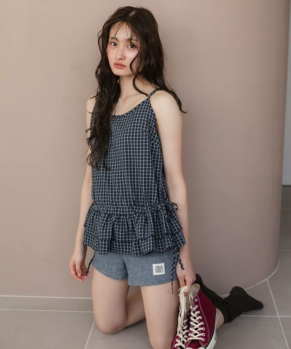 裾のペプラムデザインを掛け合わせたキャミソール。