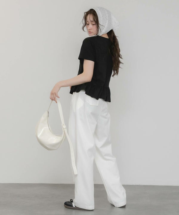 ウエスト位置に切り替えを入れることで、自然とペプラムシルエットが生まれ、着るだけで立体感あるシルエットを演出します。