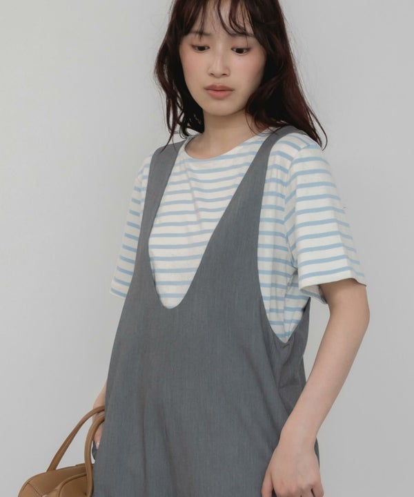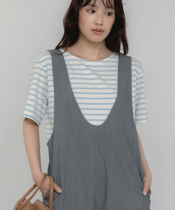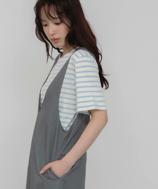 ライトブルーは、グレーのオーバーオールやカーゴパンツと合わせて、