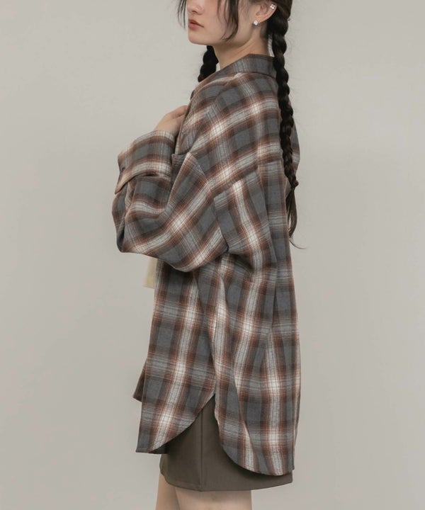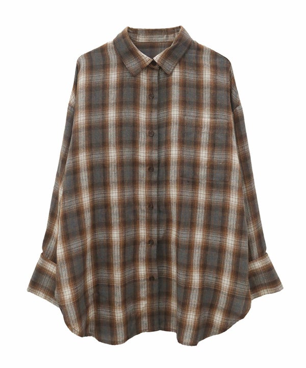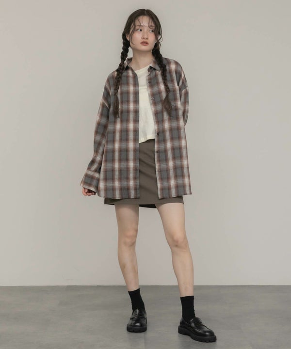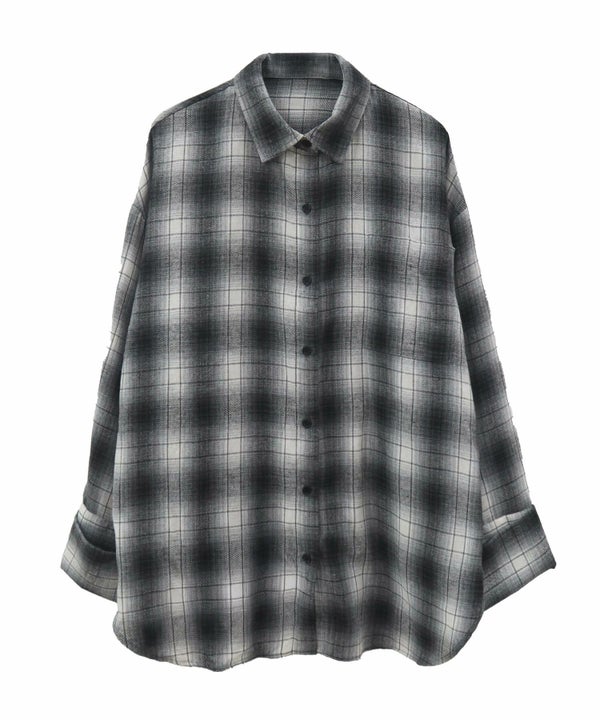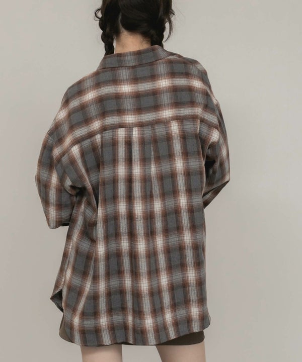 ワイドスリーブが特徴のチェックシャツ。