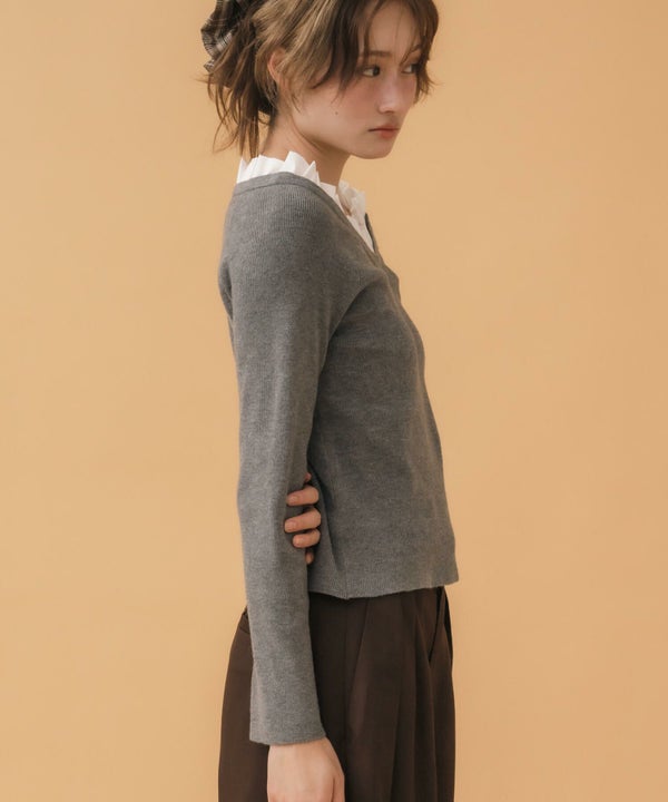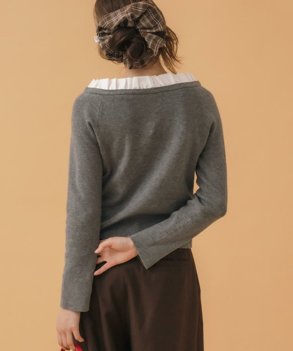 ジャケットやカーディガンからフリルがちらっとのぞき、