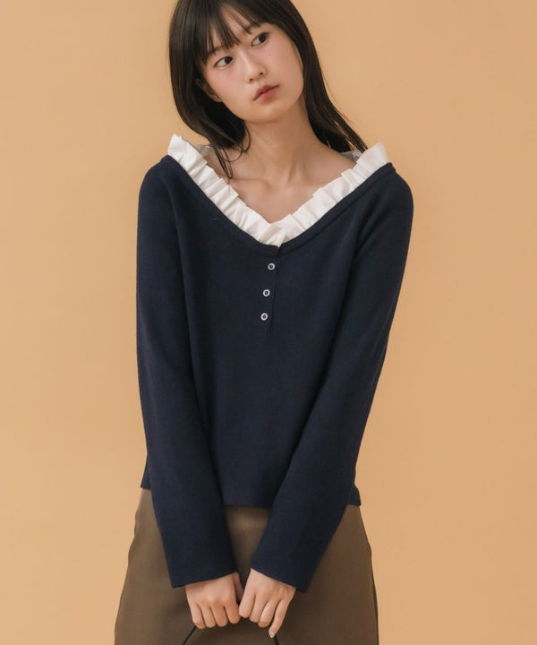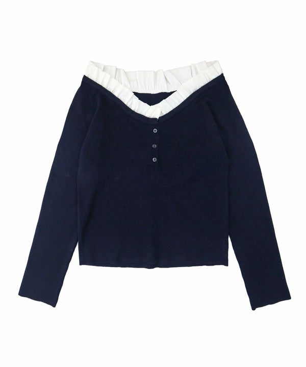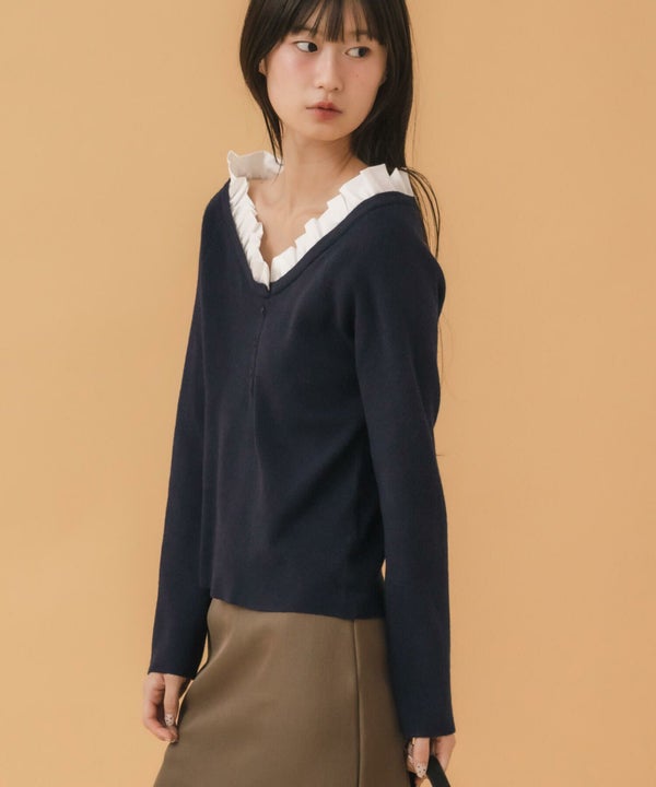 フリル部分には軽い布帛素材をプラス。
