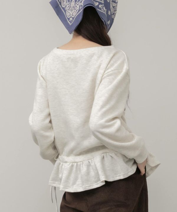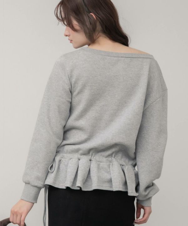 さりげなく表情が生まれるオフショルスウェット Off Shoulder Peplum Sweatshirt
