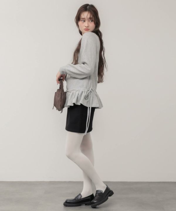 タイトスカートやミニ丈ボトムと合わせれば、裾のフリルがポイントになり、軽さのある女性らしい印象に。