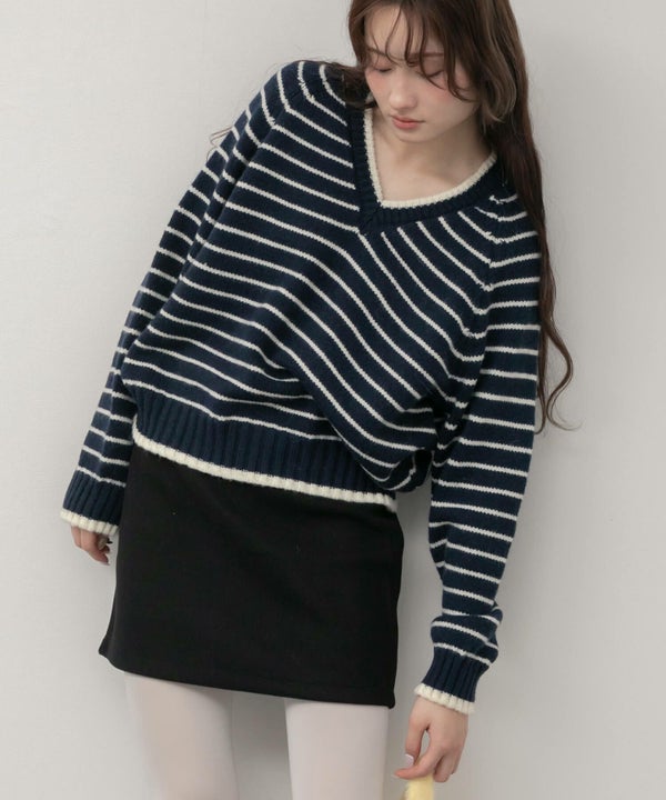 抜けのあるVネックで、いつもの装いを軽やかに VNeck Border Knit Tops
