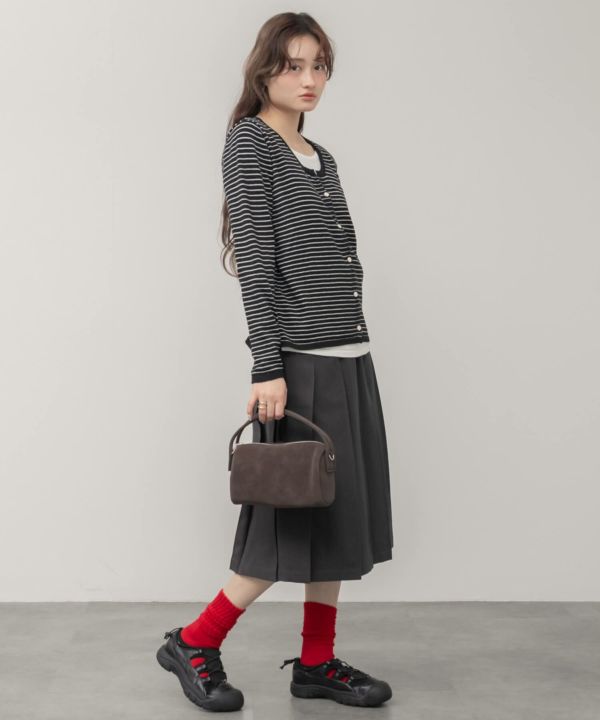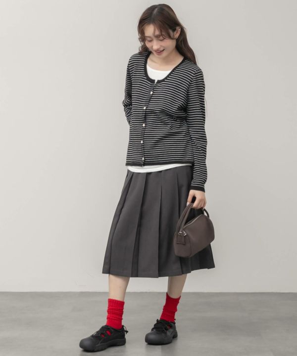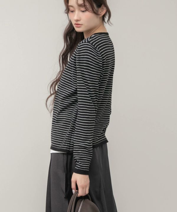 ボーダーカーディガンとインナーを重ねたように見える、レイヤード風デザイン。