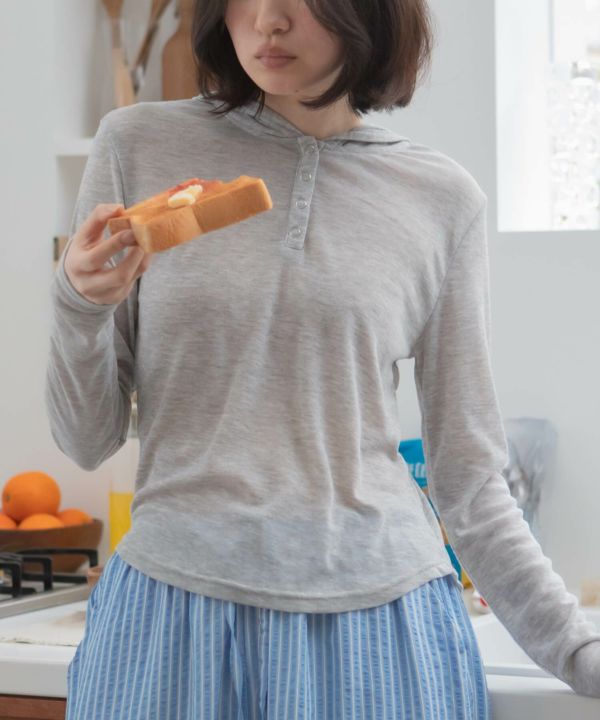 ラフさと繊細さをあわせ持つフーディートップス Henley Neck Hoodie Tops