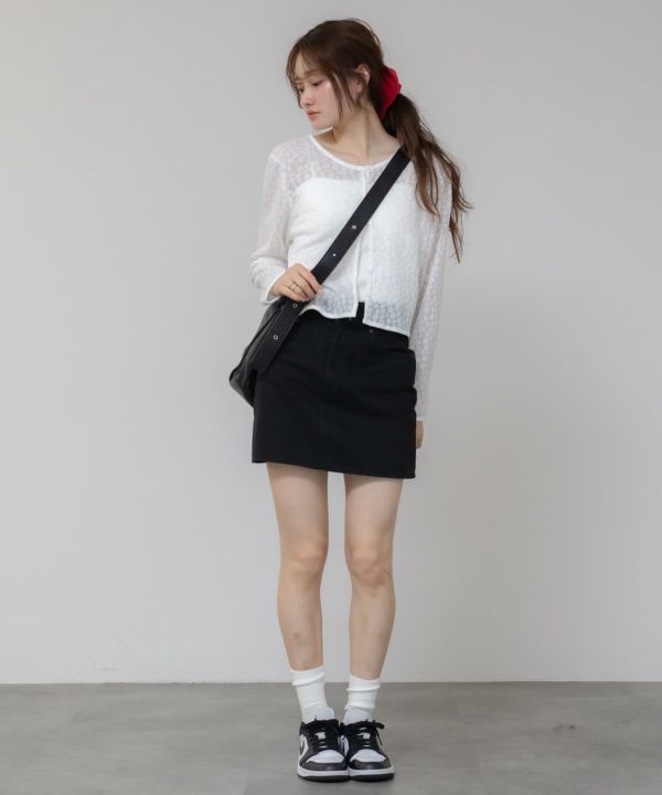 軽やかなシアー素材を使用し、季節感のある透け感がポイント。 柔らかな肌ざわりで、インナーとのレイヤードを楽しめる一枚です。