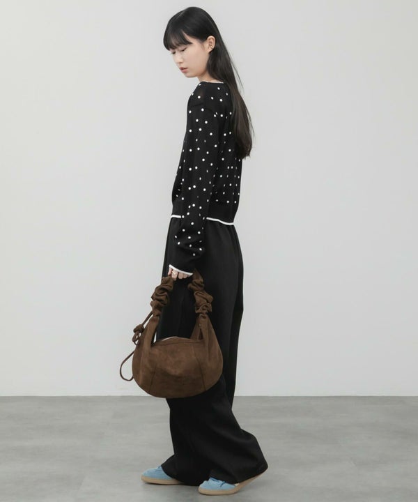 甘くなりがちなドットも、コントラストのある配色とすっきりしたシルエットで、程よく大人な印象に仕上げています。