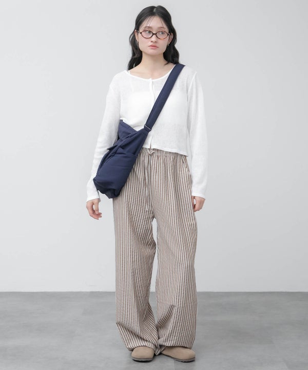 ショート丈を活かして、ワイドパンツやスカートと合わせると全体のバランスが取りやすくなります。