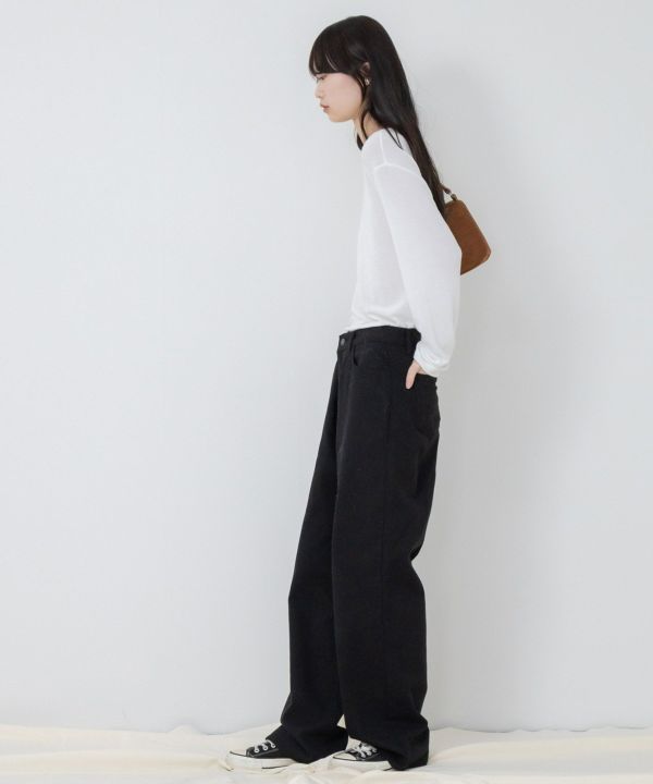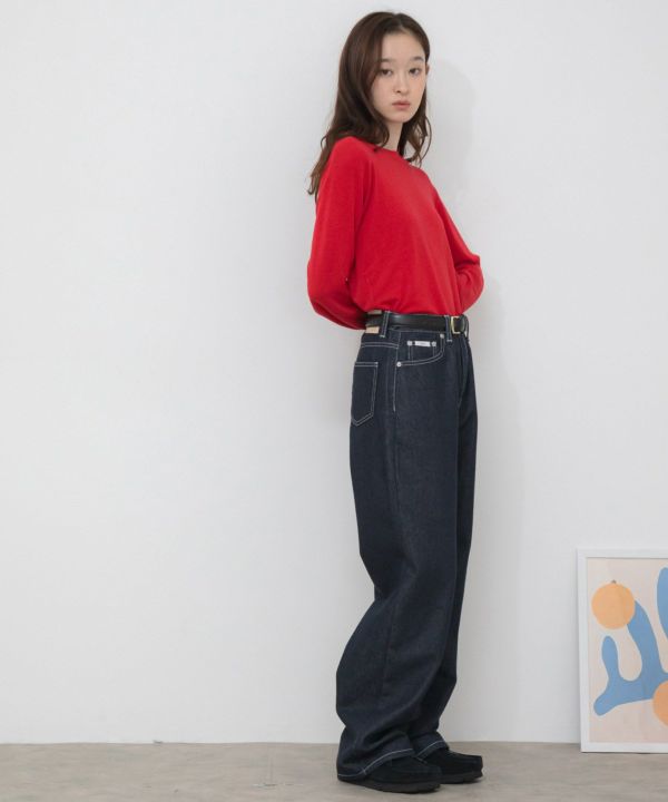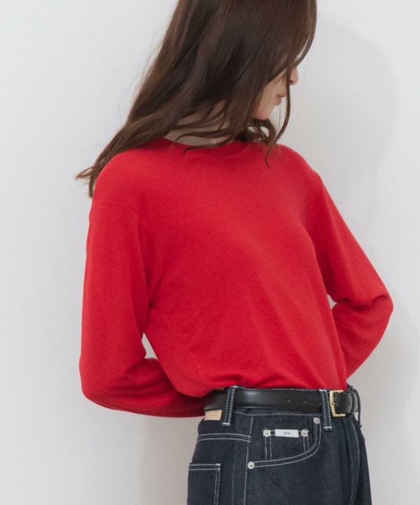 ロンTのように合わせるボトムを選ばない万能アイテムですが絶妙な空き具合のネックラインとしなやなかニット素材がカジュアルにもきれいめにも合わせやすいアイテムです。