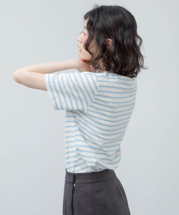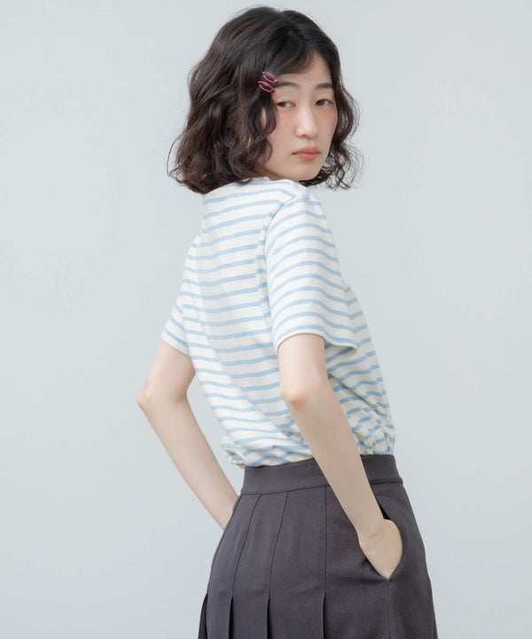 首元は程よく詰まったクルーネックで、安心感のある着用感。