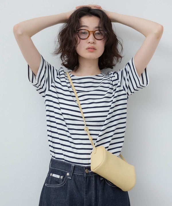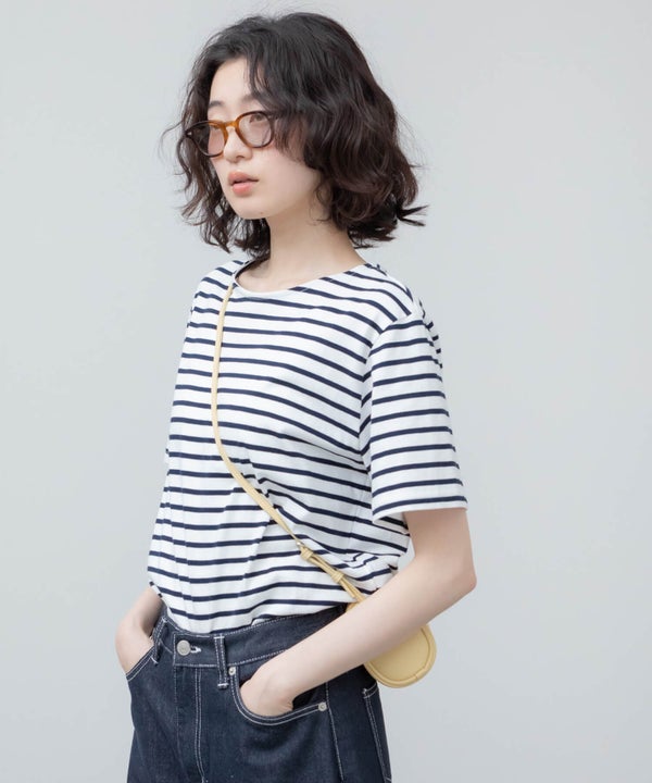 ネイビーのボーダーは、ブラックのショートパンツとローファーでまとめるとミニマルなコーデに仕上がります。