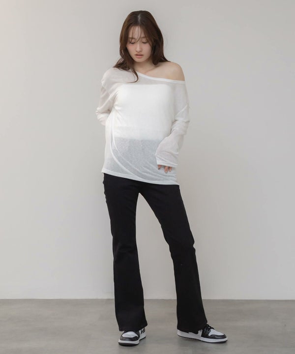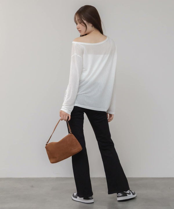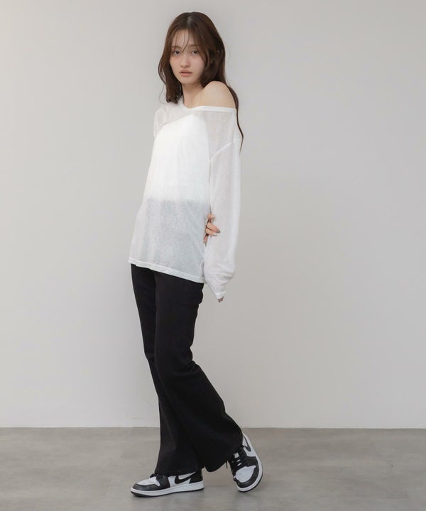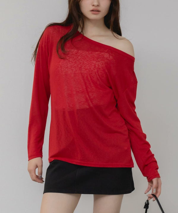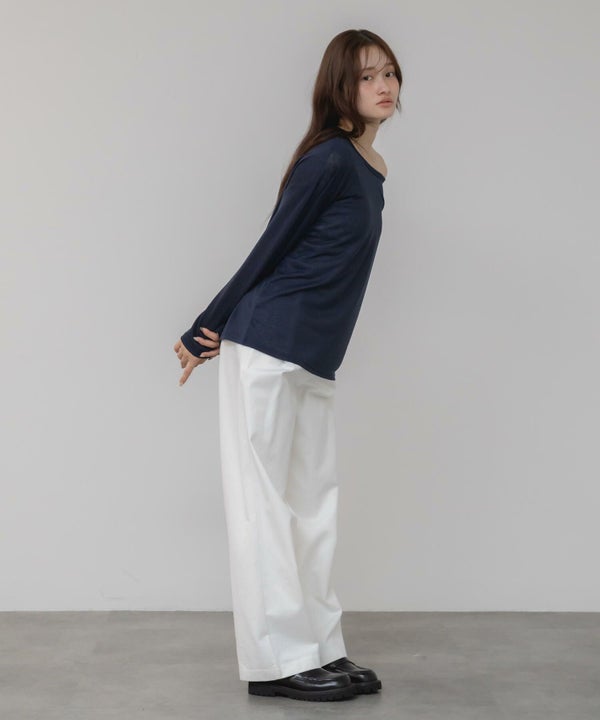 ゆるっとしたサイズ感が特徴の長袖カットトップス。