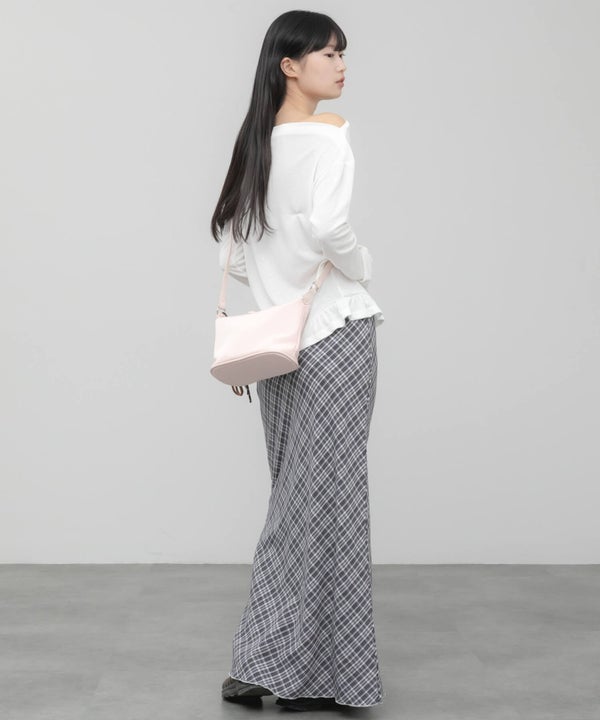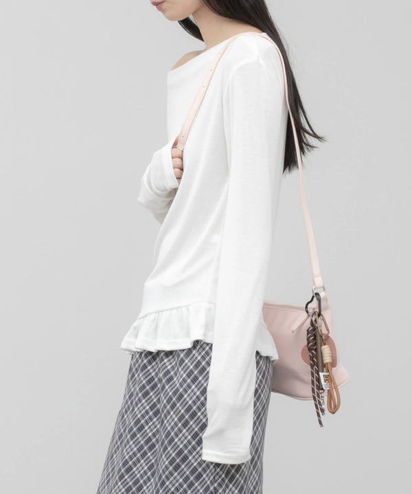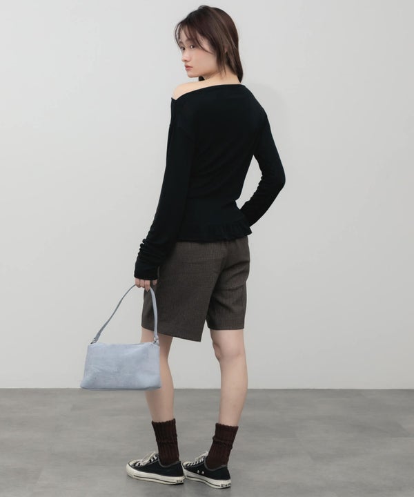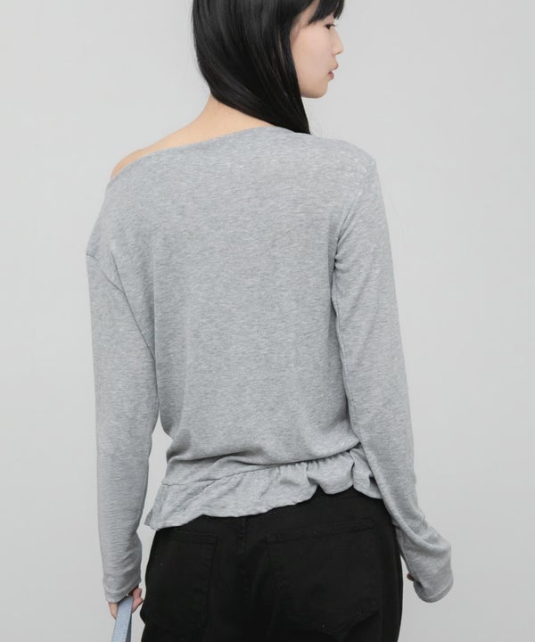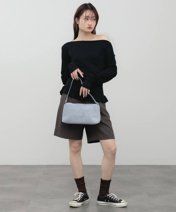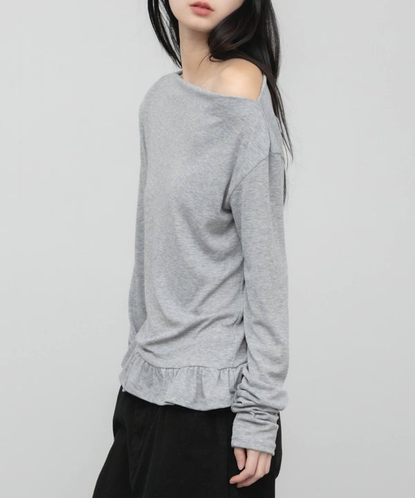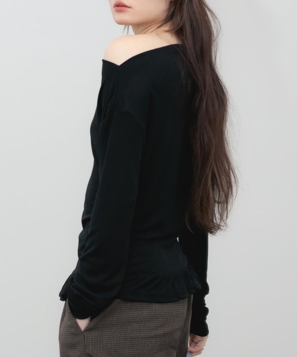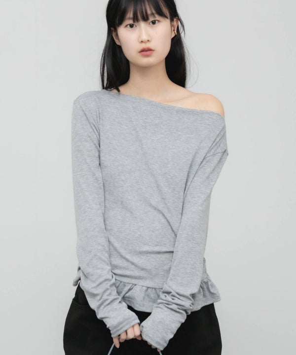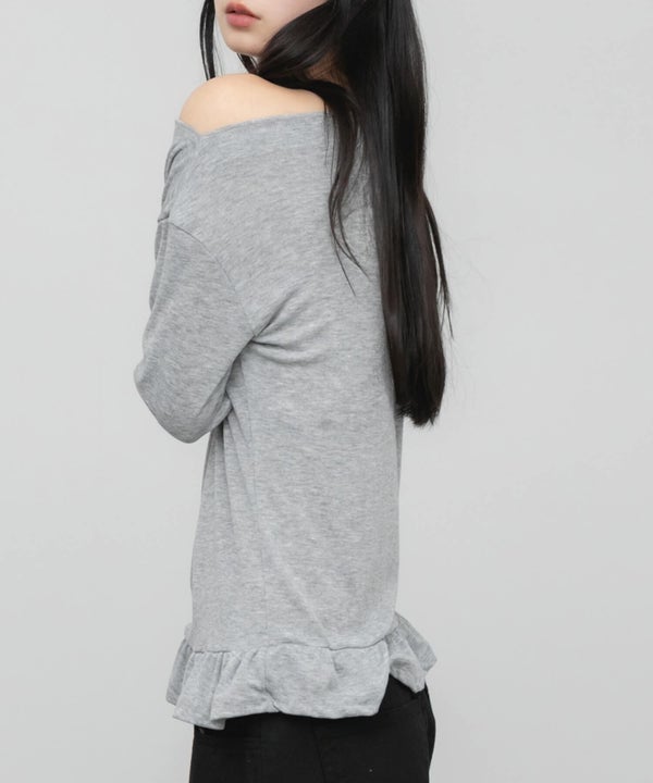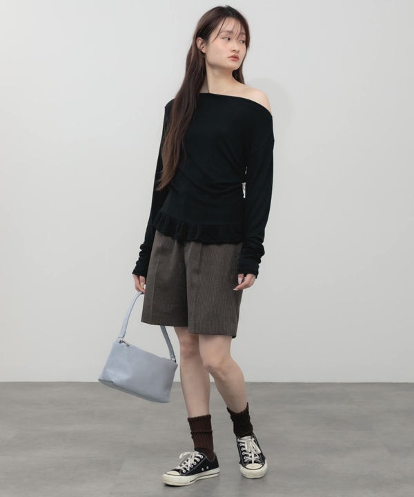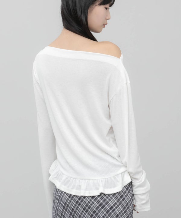 デコルテをきれいに見せてくれるオフショルダーデザインのトップス。