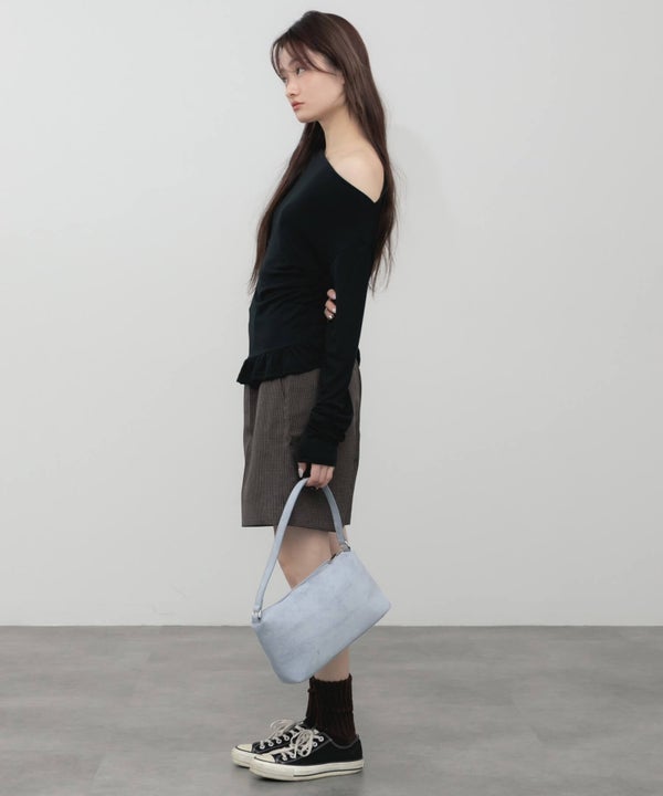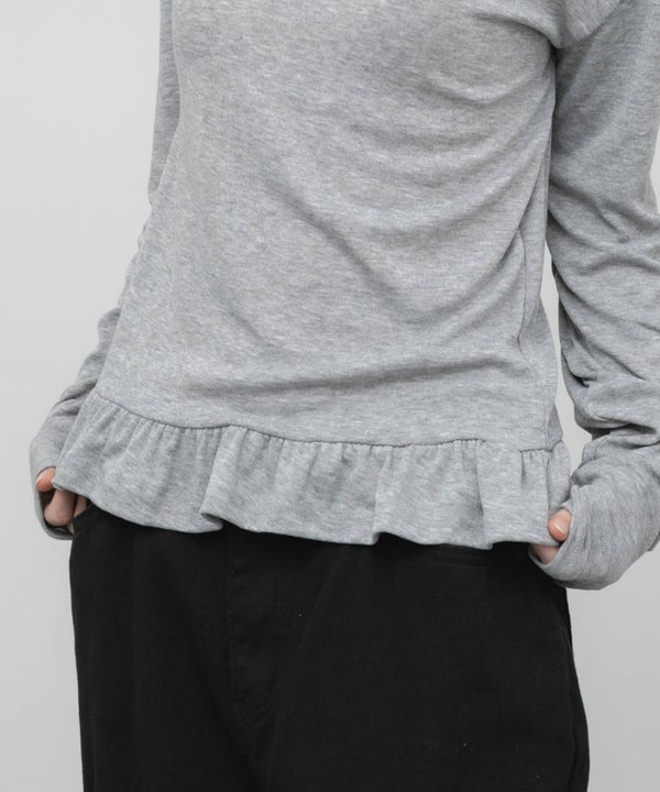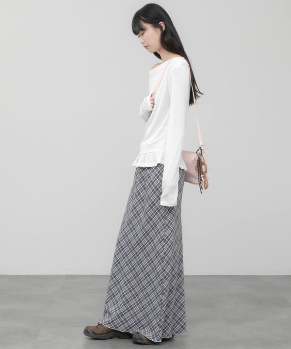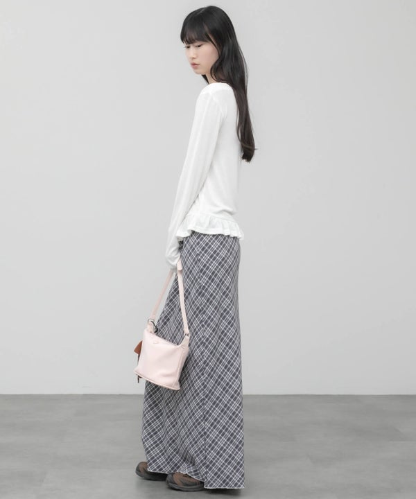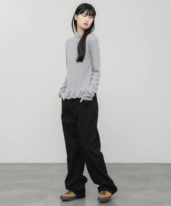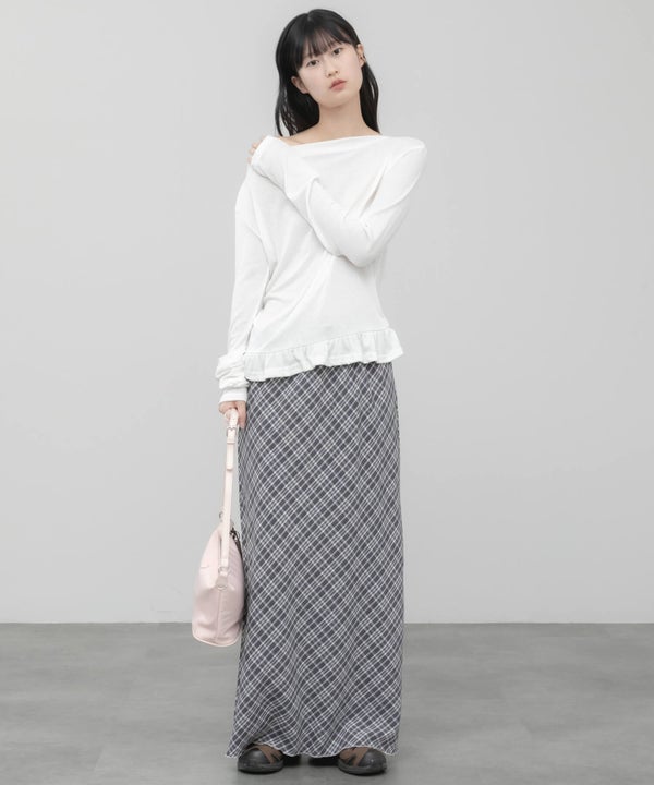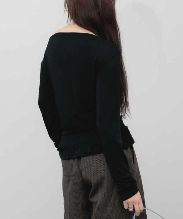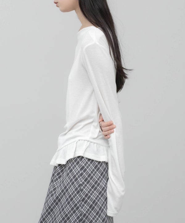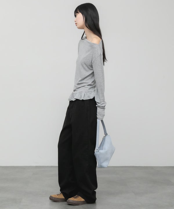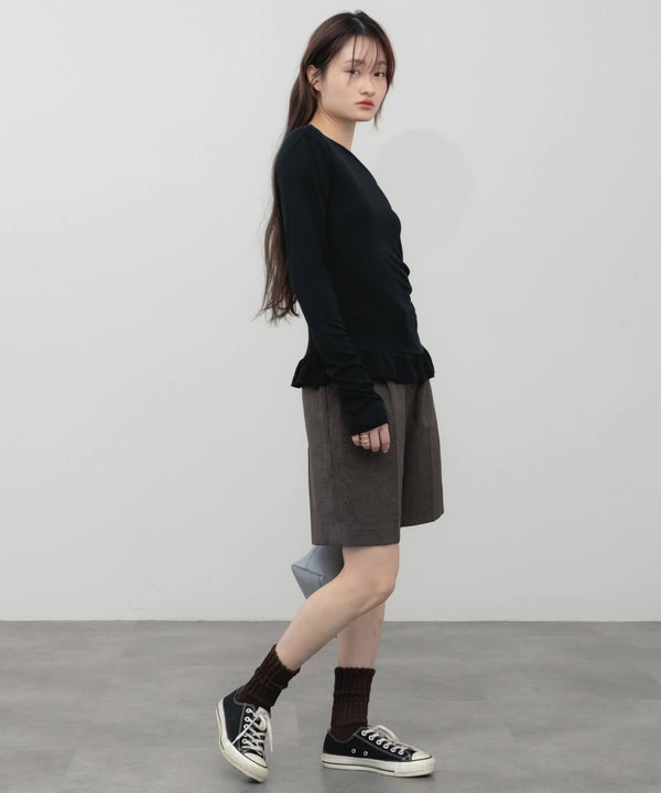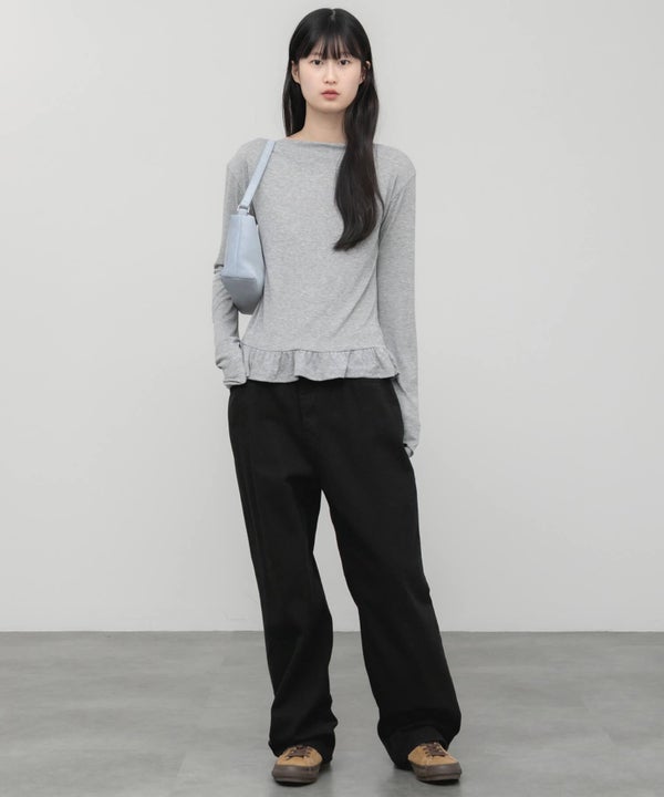 ウエスト部分をすっきりさせ、裾にはさりげないペプラムフリルをプラス。