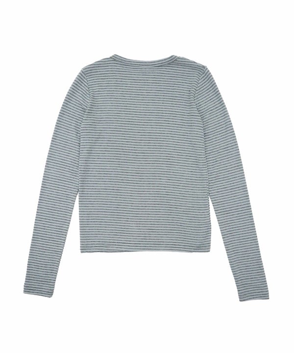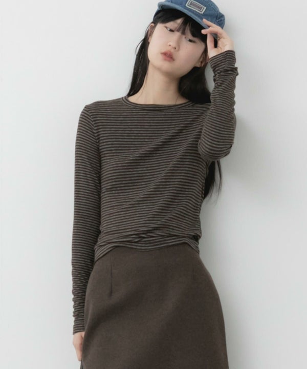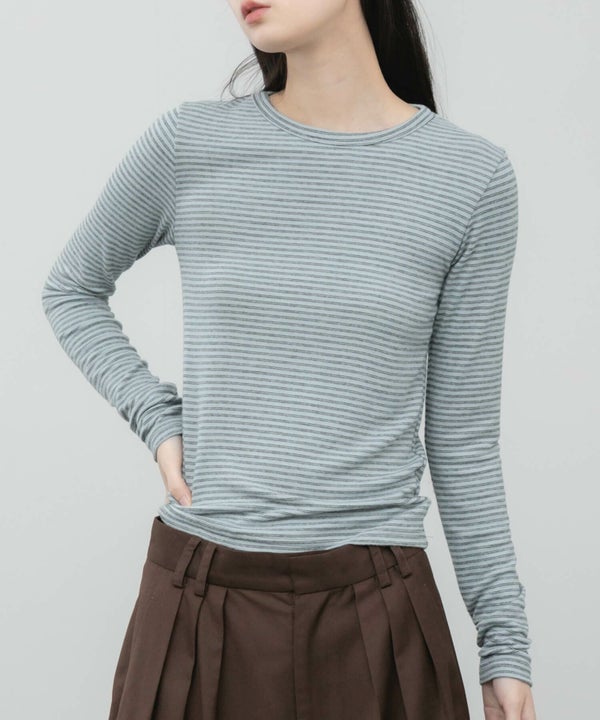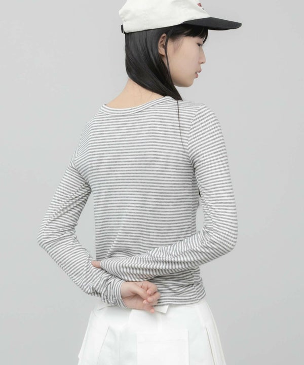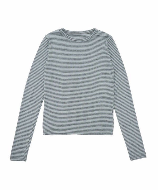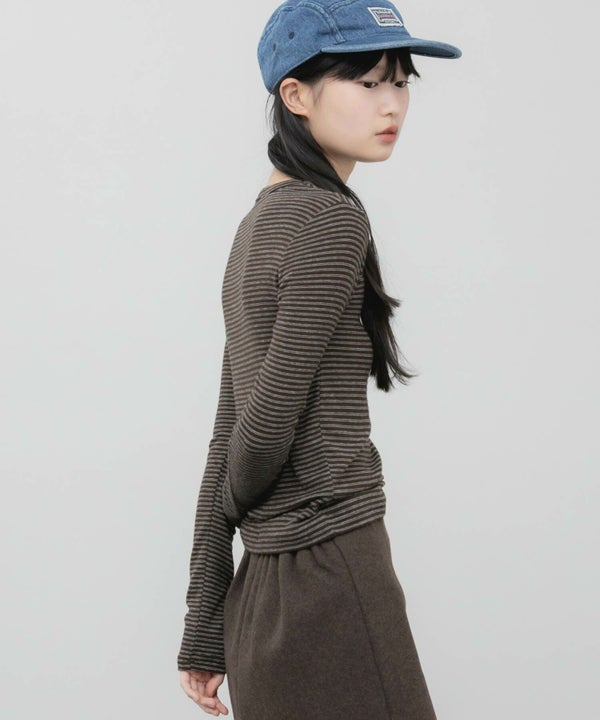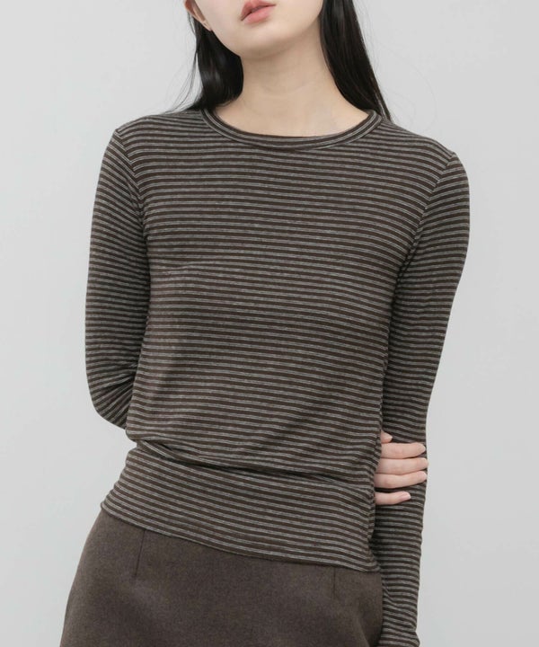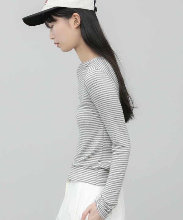 細ピッチのボーダーが主張しすぎず、スタイリングに自然と溶け込むコンパクトロンT。