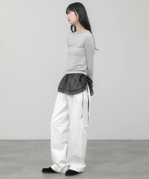 シャツやスウェット、カーディガンのインナーとして取り入れればボーダーがさりげないアクセントになり、レイヤードスタイルに奥行きをプラスします。