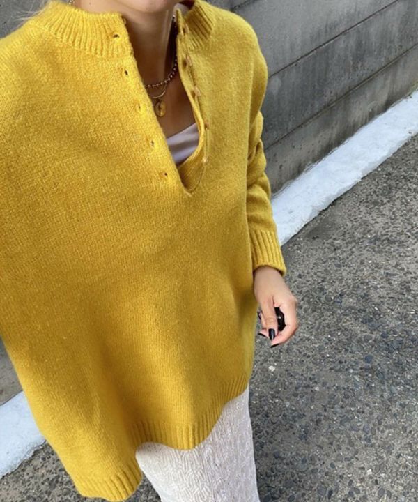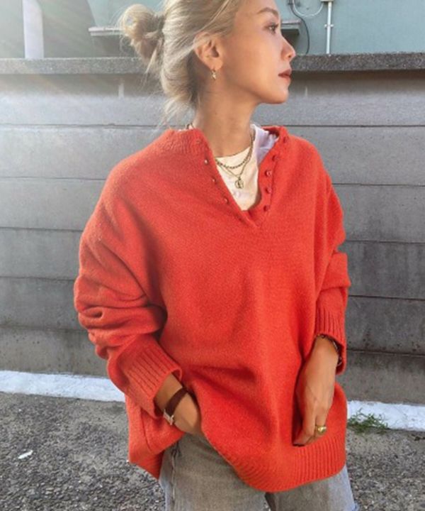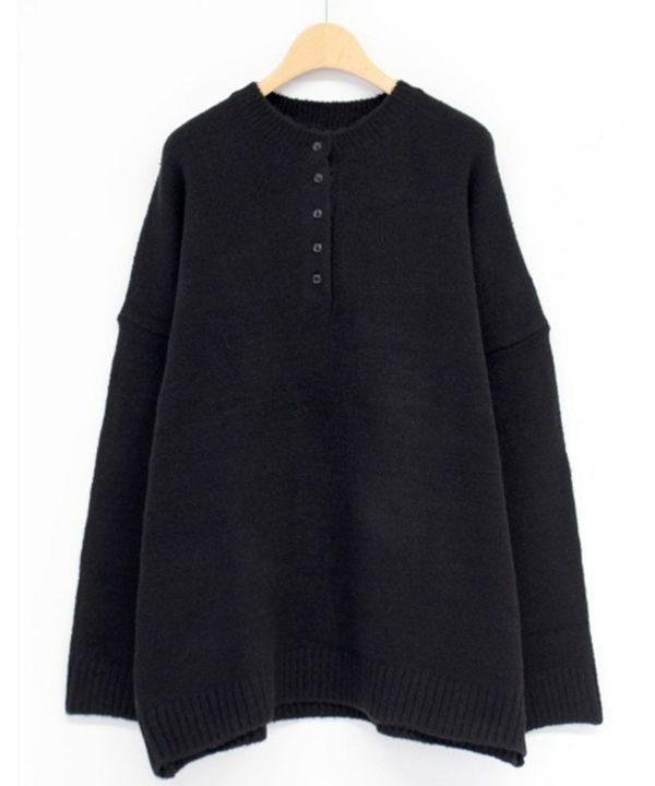 ヘンリーネックがスッキリ見えを叶えてくれるオーバーサイズニット 【Hideka Select】Henry Neck Oversized Knit