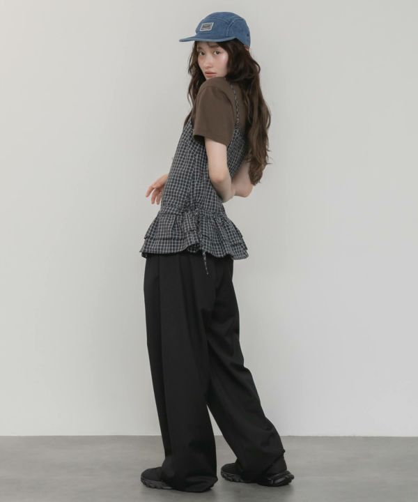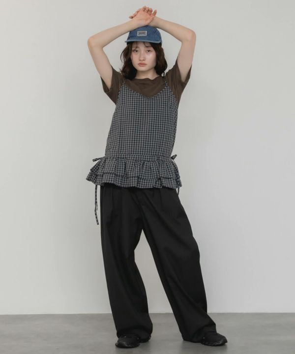 裾のペプラムデザインを掛け合わせたキャミソール。