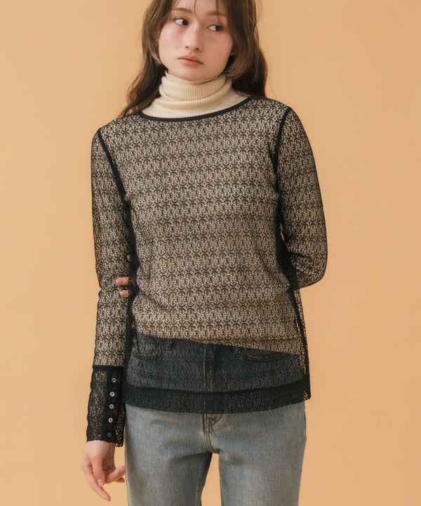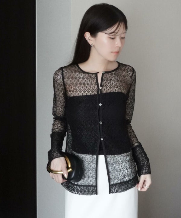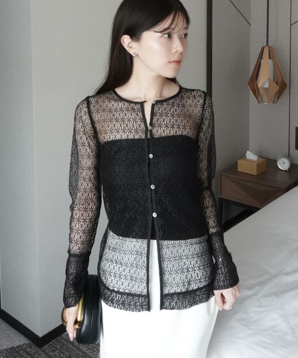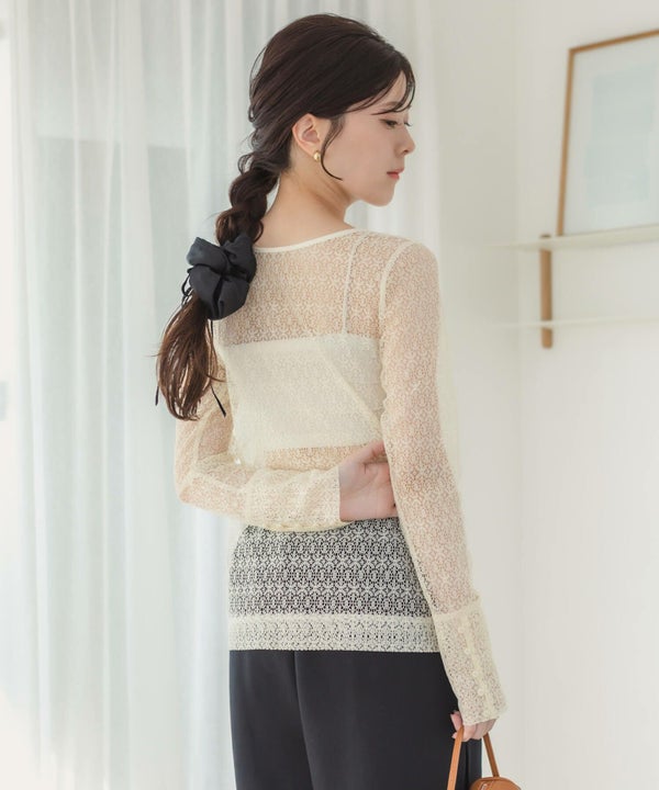 細やかなレースが美しく映える、前後2WAY仕様の長袖ブラウス。