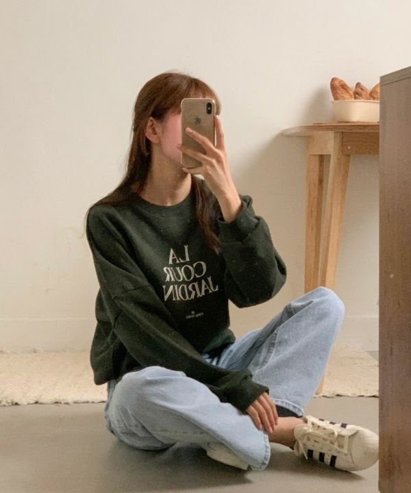 ロゴスウェット/オーバーサイズスウェット/ビックサイズスウェット/ショート丈スウェット/大人カジュアル/ワンポイントロゴ/古着風MIXコーデ/韓国ストリート風/裏毛/スポーツミックス/ノームコア