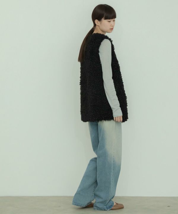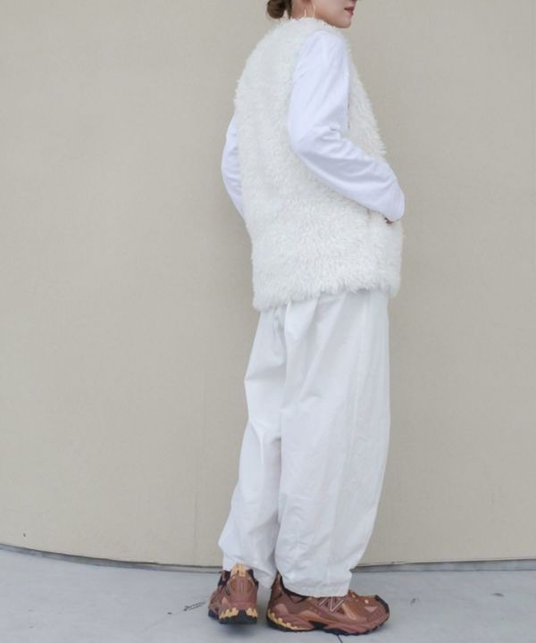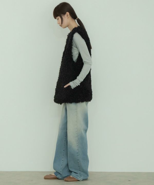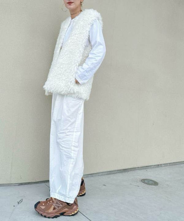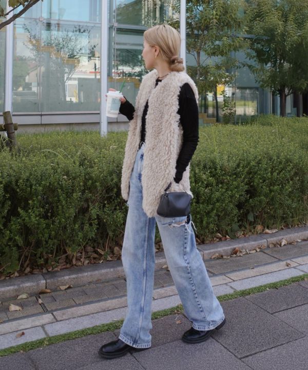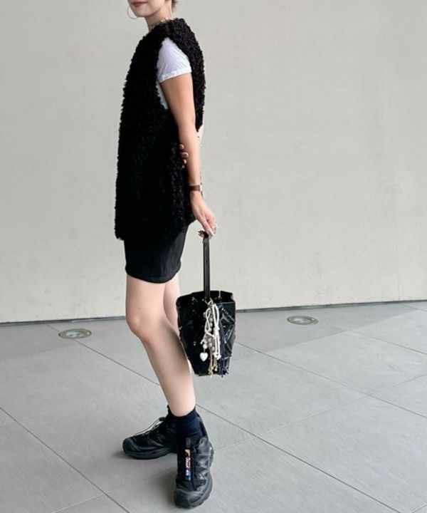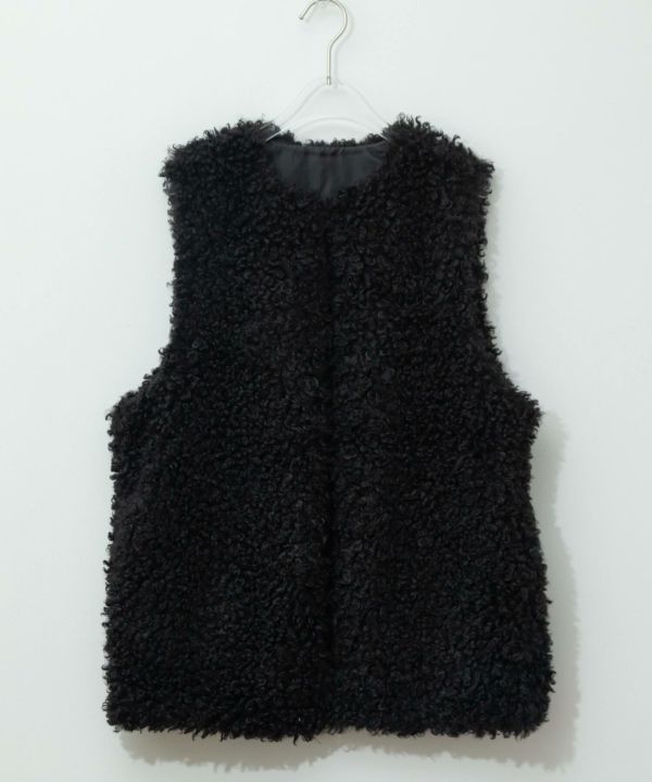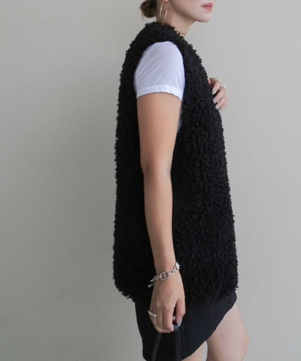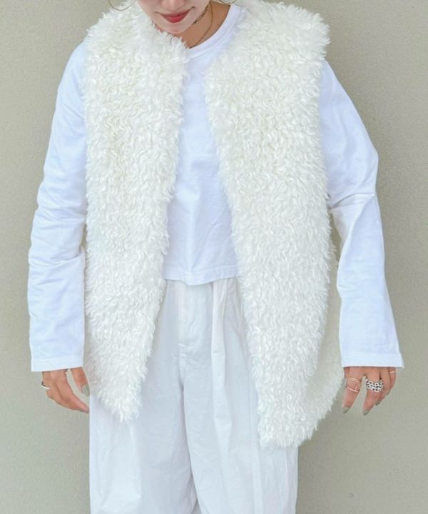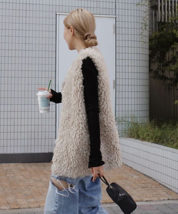 くるくるとしたカーリーな毛足のフェイクファーで存在感がありながらも上品な印象に。