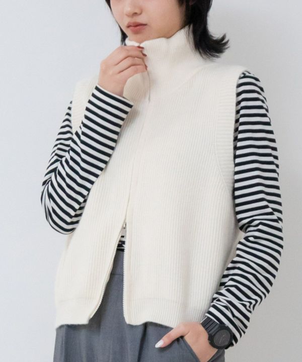 いつものコーデにラフさと今っぽさをプラスするダブルジップべスト Short Double Zip Knit Vest