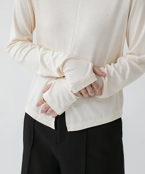 手元まで長めの袖丈にはフィンガーホールが施され、