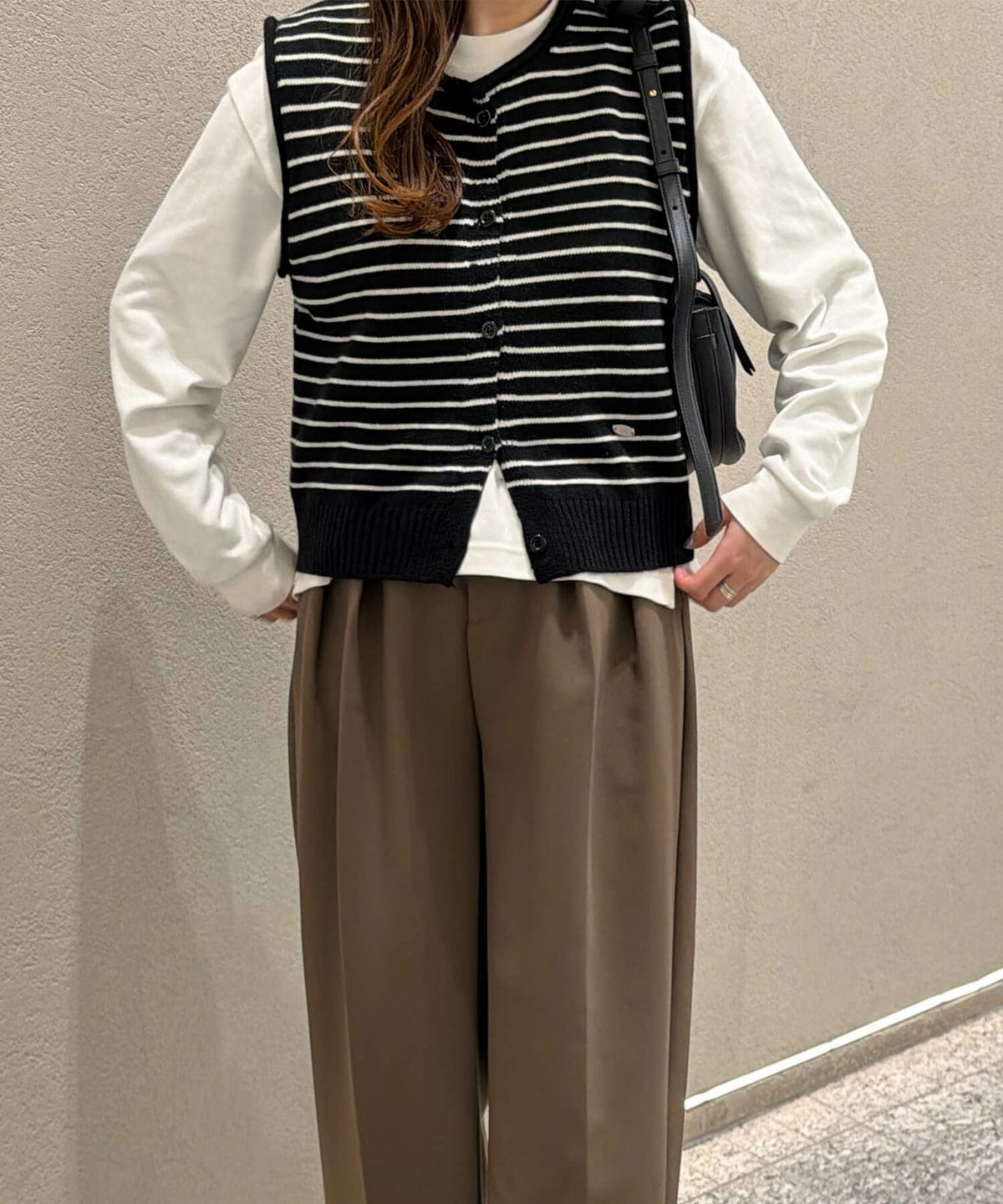 他の画像を見る 着回し力の高いコンパクトボーダー 【chel Select】Compact Striped Knit Vest NEW SALE ¥ 6,930 ¥ 5,930 税込 カートに入れる お気に入りに登録する