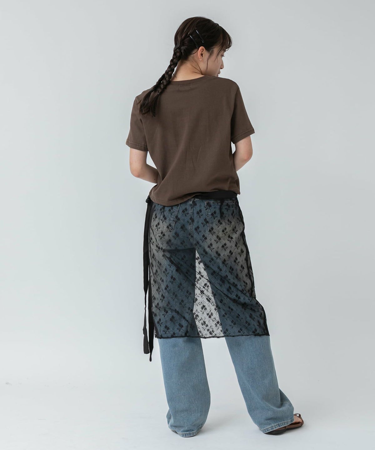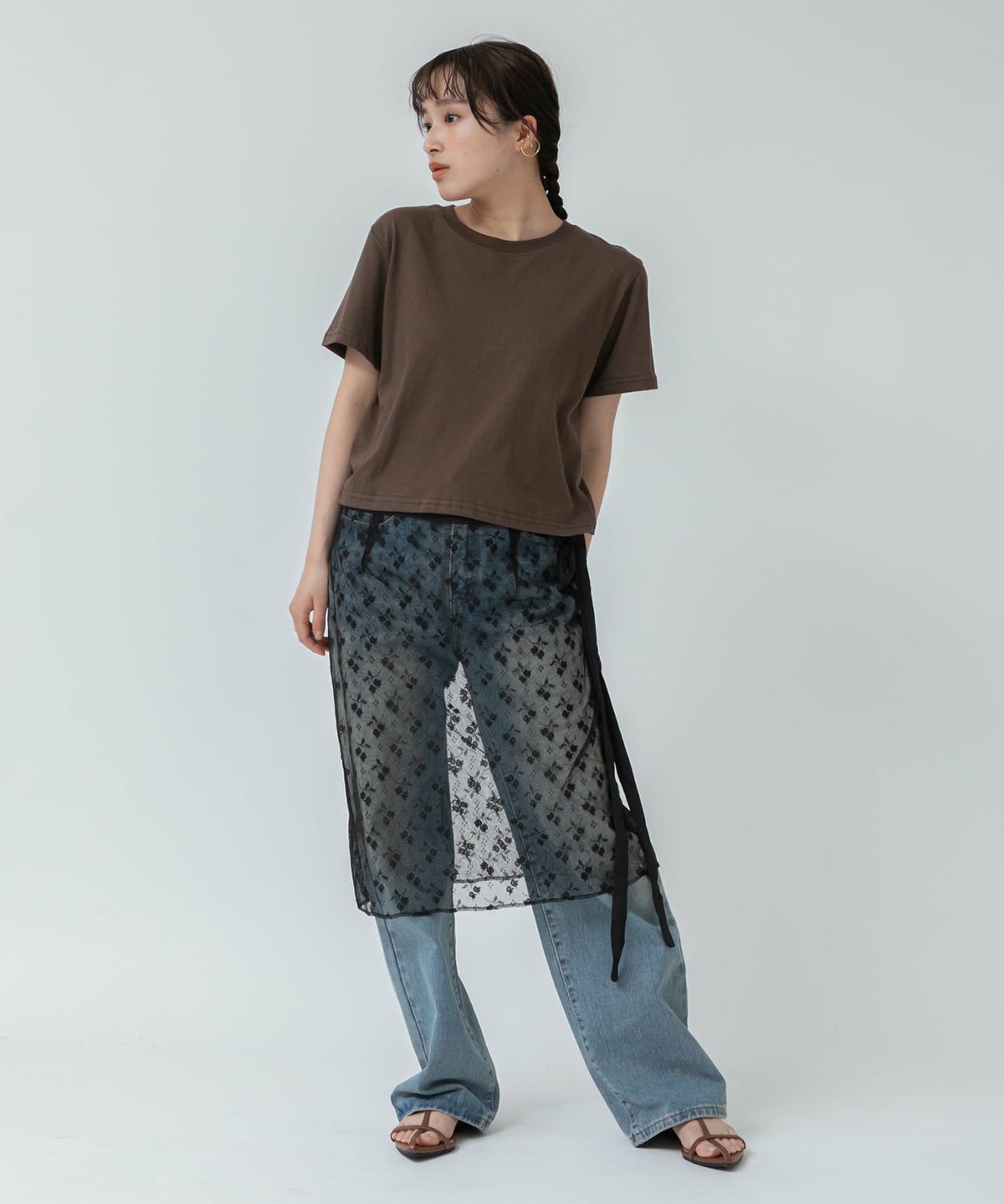 チュール×シアーカットソーがセットになったテクニック要らずのレイヤードトップス Tulle Layered Sheer Rib Cutsew