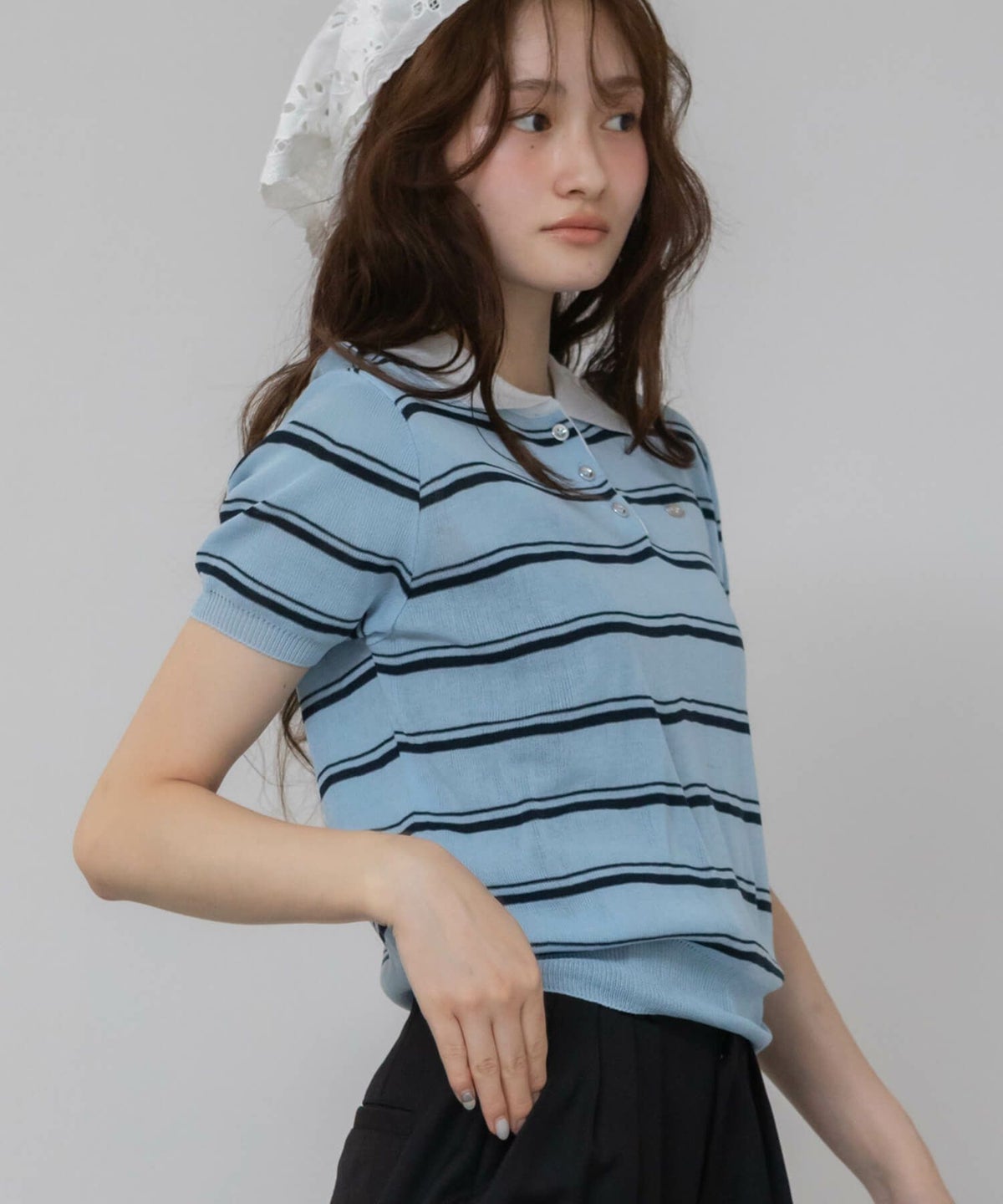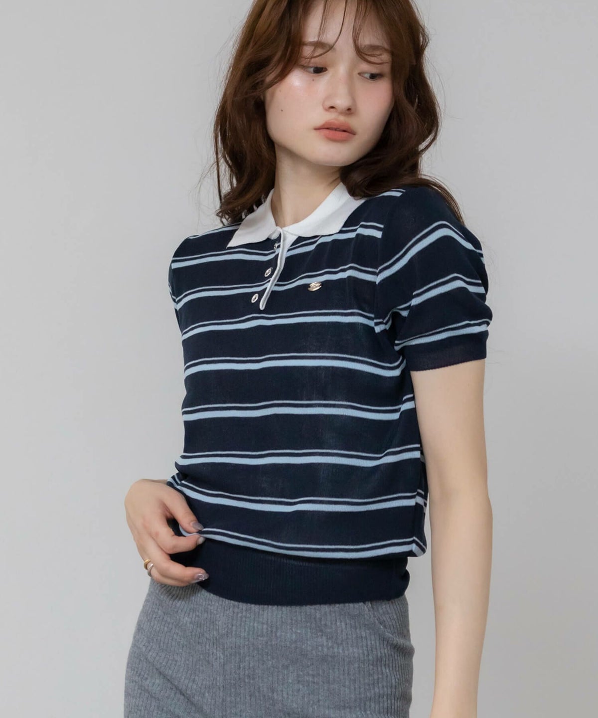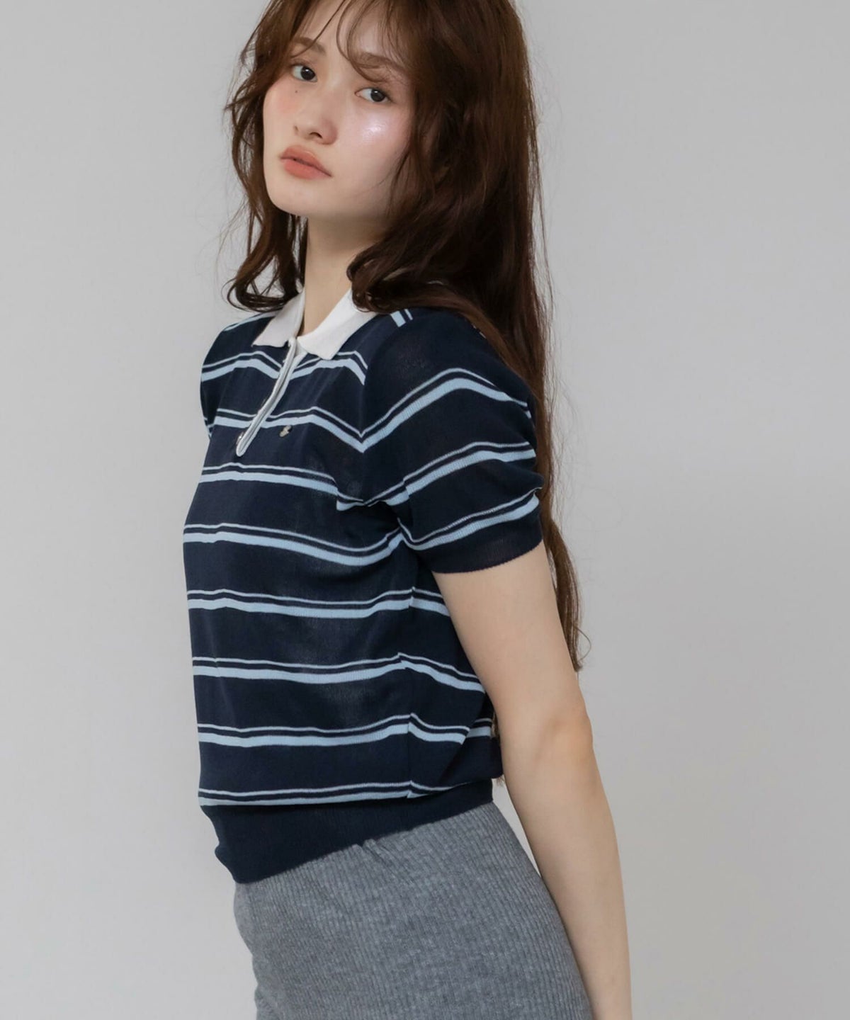 クラシックムード漂う、レディなボーダーポロ。 Border Polo Knit