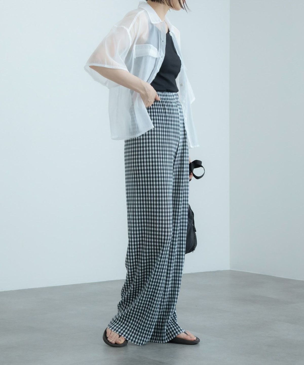 他の画像を見る ギンガムチェックが映えるイージーパンツ Gingham Check Pleat Easy Pants SALE ¥ 5,940 ¥ 2,970 税込 カートに入れる お気に入りに登録する