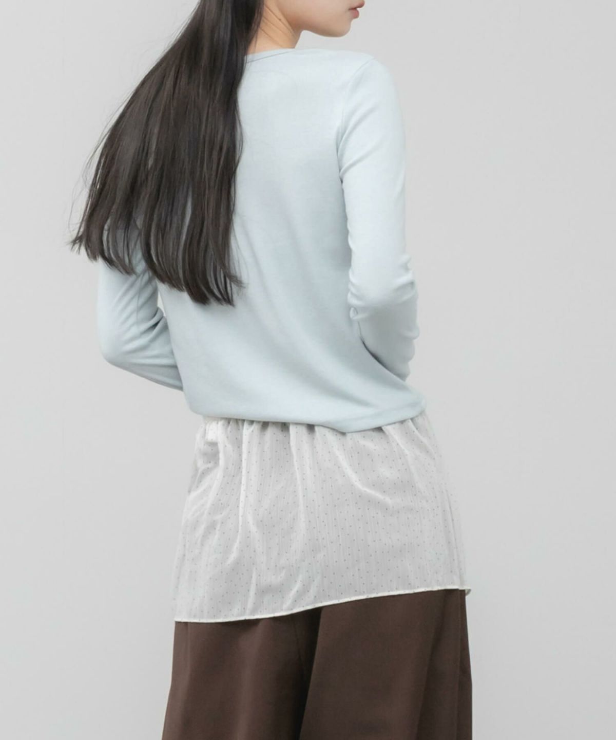 他の画像を見る チュール×シアーカットソーがセットになったテクニック要らずのレイヤードトップス Tulle Layered Sheer Rib Cutsew SALE ¥ 6,930 ¥ 2,425 税込 カートに入れる お気に入りに登録する