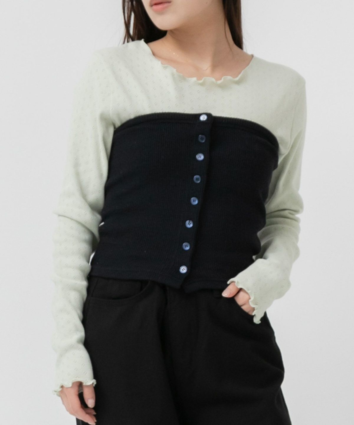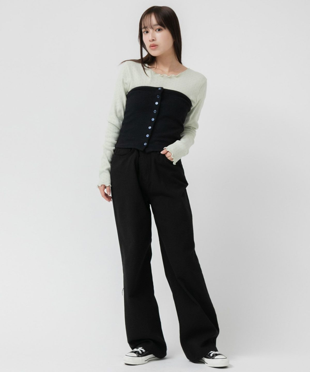 他の画像を見る スタイリングを仕上げてくれるニットビスチェ Front Button Rib Knit Bustier SALE ¥ 5,720 ¥ 4,862 税込 カートに入れる お気に入りに登録する
